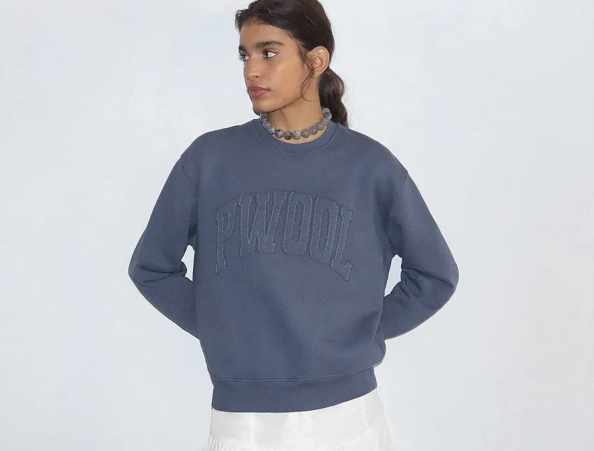 Classic Sweatshirt With ‘Pwool’ Raw-Cut Text Detail.